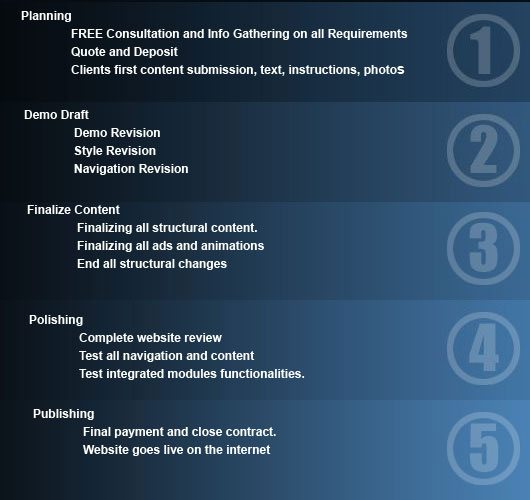 START TO COMPLETIONAfter your initial consultation, deposit and content submission, you'll have authorized client credentials. A "Client Area" will be created for you during production, where you can log into to review and critique project process and progress. Milestones will be set towards project completion, these will be your revision points through production.. Customization gives you exactly what you want the way you want it.